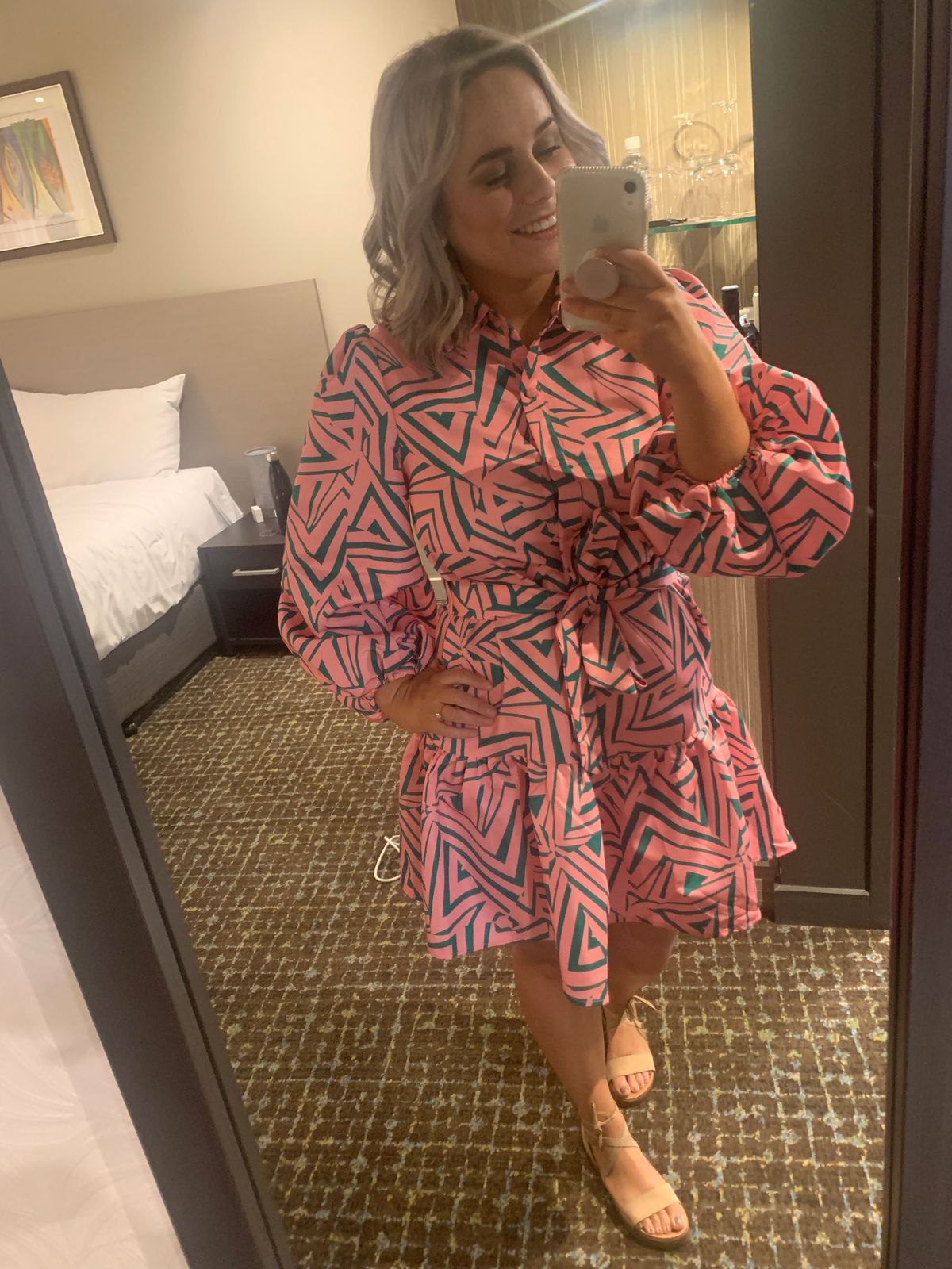 Bringing you the crowd favourite but in with a fun new geometric pattern. The Grayce Geo Mini Dress Pink Green will be sure to make you stand out of the pack.