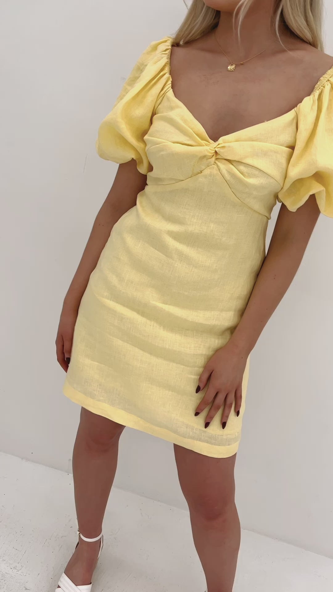 Look vibrant and stylish in Jordana Mini Dress. Featuring a cheerful yellow colourway, V neckline, detail at the bust, and short puff sleeves, you'll love the way this dress pairs with your favourite shoes and accessories. An invisible zipper on the back provides a perfect fit.